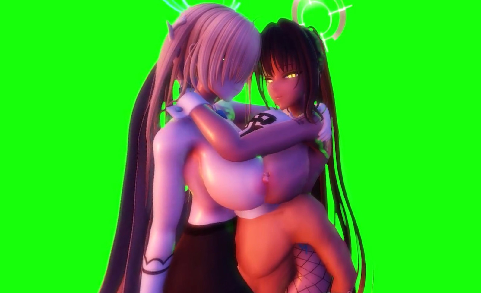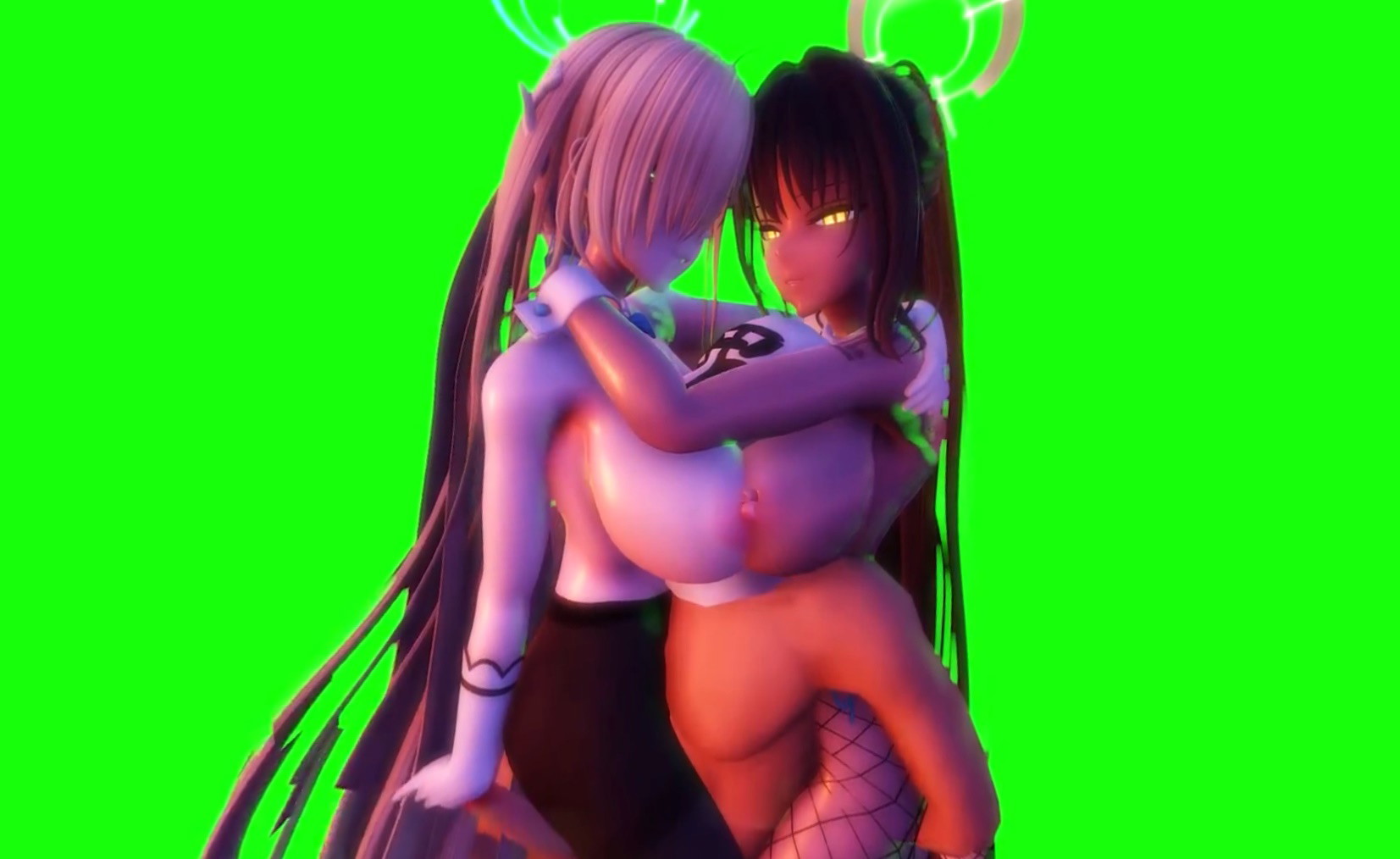 Immerse yourself in this augmented reality fantasy where stunning CGI hentai beauties Asuna and Karin bring a voyeuristic threesome to life in breathtaking 8K detail. As the hidden spectator, watch as the masked man lounges in a seated position, enveloped by the two voluptuous vixens. The blonde Asuna presses forward, her massive tits heaving against Karin’s equally enormous breasts from behind, sandwiching the man’s face in a soft, smothering paradise of cleavage. Their bodies entwine tightly around him, creating an intimate cocoon of desire that blurs the line between virtual and real.