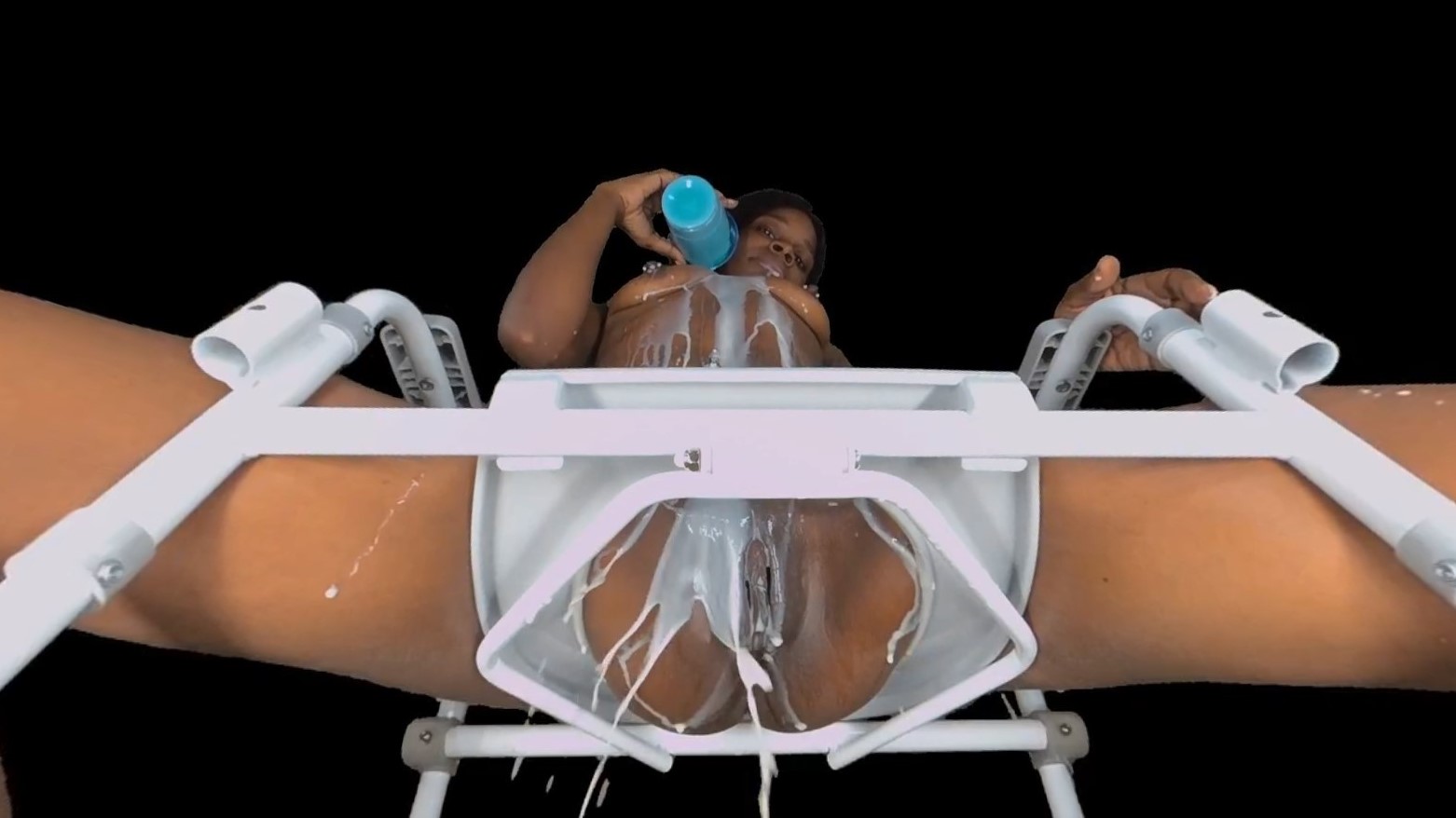 Get ready for a hot AR ride with Chocolate Bae from Ebony VR Solos. She’s a curvy black beauty sitting naked on the toilet seat right above you. You look up and see her pour milk all over her body. It runs down her big tits and wet pussy, making her shine. She rubs herself and fingers her spot, letting the white liquid drip onto your face below. The sounds feel real with binaural audio, like you’re right there. Plus, you can rewind or slow down the action to enjoy every drop.
