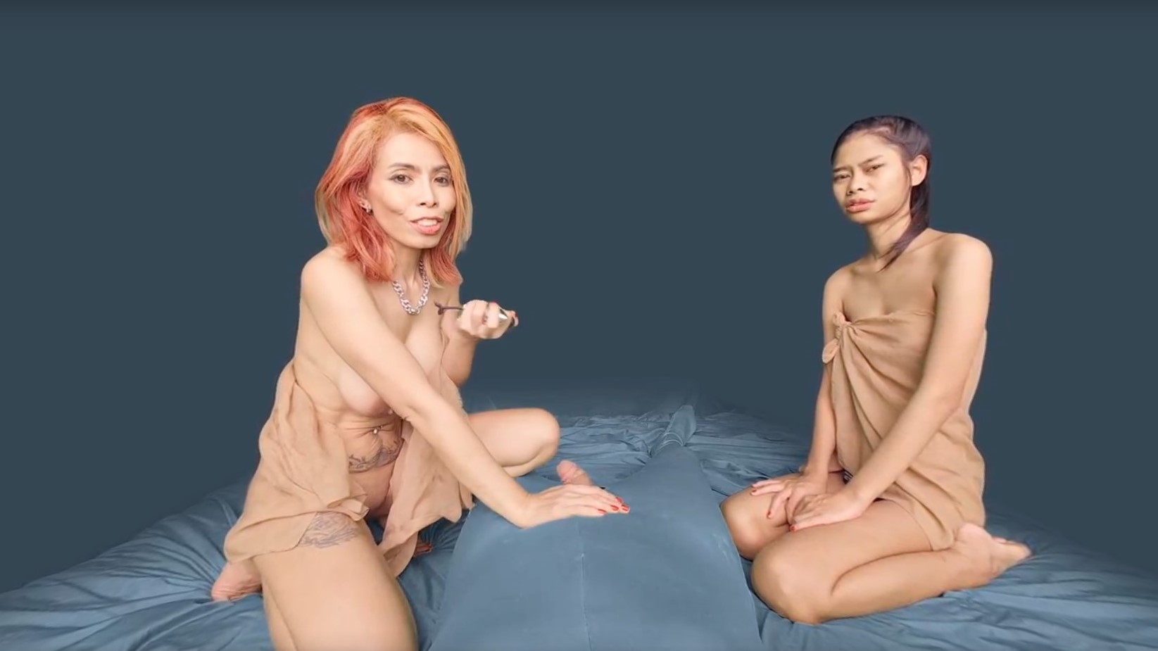 Lay back and get comfortable because two captivating Asian stunners are about to give you the time of your life. AmyVR with her voluptuous curves and intricate back tattoos, and the youthful Gael boasting succulent little tits, take control of your desires. As you recline in this virtual intimacy, Gael mounts you in a tantalizing reverse cowgirl stance, her lithe body grinding rhythmically while AmyVR teases Gael’s tight rear with a sleek toy, her fingers expertly stroking the slick folds nearby. The scene pulses with raw energy, drawing you deeper into their playful yet intense exploration.