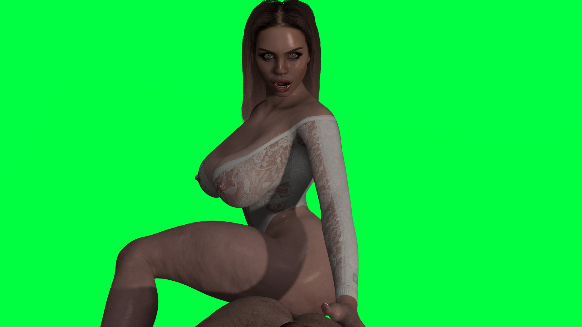 In the immersive world of Spline VR, dive into an intense encounter with a stunning CGI brunette whose massive tits strain against her sheer white lace lingerie, paired with tantalizing fishnet stockings that hug her curves. She spreads her legs wide on the bed, her hairy pussy already slick with anticipation. You tug the delicate fabric of her lingerie aside, exposing her fully, and thrust your cock deep into her welcoming heat in missionary position. Her body arches beneath you, huge breasts bouncing with each powerful stroke as you drive harder, her thick thighs jiggling rhythmically against your hips.