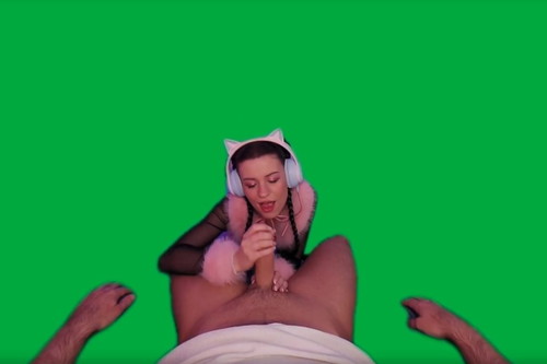 Mia Stone, the stunning brunette pornstar with intricate tattoos covering her body, kneels before you in her dimly lit room, her long hair woven into two playful plaits framing her face. Still wearing her gaming headphones from the stream she just ended, she flashes a mischievous smile, her fingers tracing teasing patterns along your thighs. She tugs down your pants, eyes widening at the sight of your thick cock springing free. Wrapping her hand around it, she strokes slowly, her head positioned just behind the shaft as she locks gazes with you, building the tension until you’re throbbing hard. Then, her lips part, enveloping the head in a deliberate, languid suck, tongue swirling as she takes you deeper, the passthrough technology making every sensation feel intimately real around her webcam setup.
